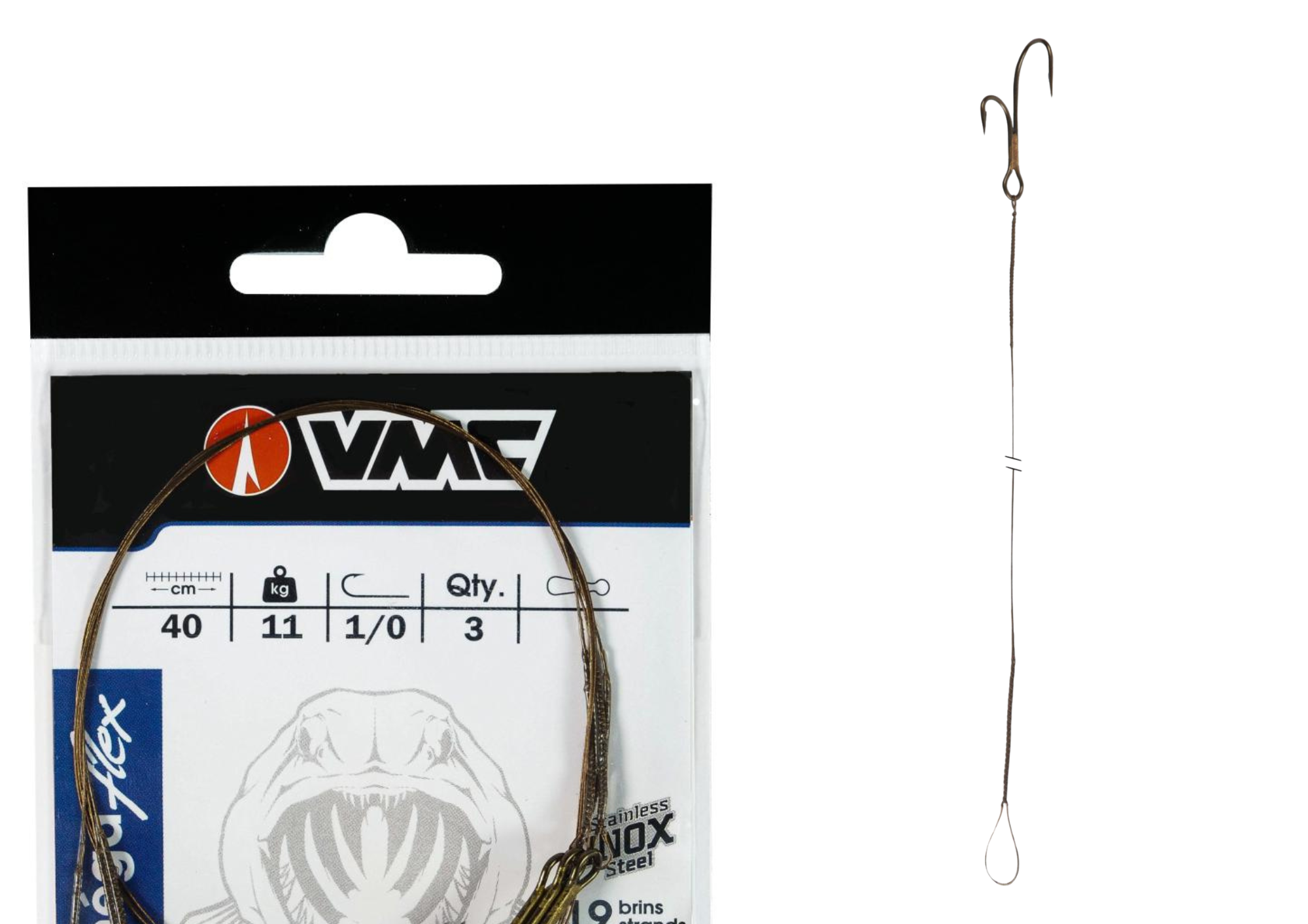 BAS DE LIGNE ACIER 19 BRINS VMC CARNASSIER MEGAFLEX HAMECON DOUBLE