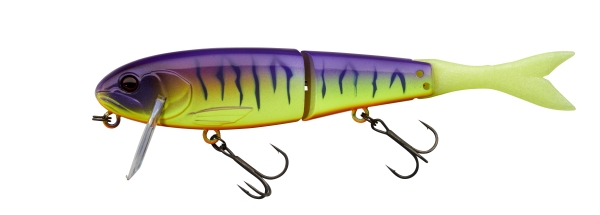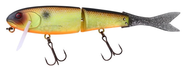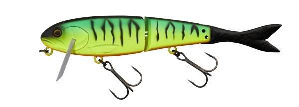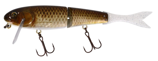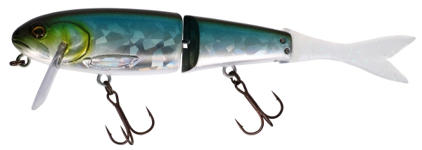 Le BLAST BONE JR 150 SF revisite le légendaire FLAT BONE CLICKER JUNIOR. Ce «Jointed Big Bait» de premier choix en reprend les spécificités (leurre flottant équipé d’une bavette inclinée de manière à le faire évoluer juste sous la surface à la récupération, corps à flancs plats segmenté en deux parties dont le mouvement va créer le cliquetis si caractéristique de l’ancienne version) à l’exception d’une queue en élastomère de type poisson. Cette nouvelle forme de queue autorise un déplacement d’eau plus important sur les récupérations en linéaire et sera nettement plus réactive sur les phases de pause lorsqu’il s’agira de décider des carnassiers récalcitrants grâce à des animations fines exercées par des tremblements de la ligne. Le BLAST BONE a la faculté de réaliser facilement un «Walking the Dog» sans trop s’éloigner de sa position initiale le prédestinant à l’origine à des pêches de postes marqués (aux abords des cavités de berges et dans les couloirs d’herbiers, les zones de couverts, les bois immergés, les enrochements et tout autre type de structure). Du fait de son fort ‘Rolling’ et sa capacité à déplacer un gros volume d’eau sur les récupérations linéaires continues, les pêcheurs européens de brochets, de black-bass et perches spécimens s’approprieront rapidement ce leurre pour toutes les pêches de prospection quelle que soit la taille du milieu. Nous vous conseillons l’ajout d’un lest de type de ‘John Weight’ afin de modifier sa densité, pour le rendre au choix ‘Suspending’, coulant lent ou coulant plus rapide permettant de rendre le BLAST BONE JR 150 SF toujours plus polyvalent. Laissez-vous séduire par cette bombe à retardement !