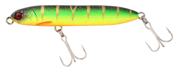 Cette petite version en 7cm vient compléter la famille CHATTER BEAST. Ce leurre de surface de type ‘Stickbait’ reprend les caractéristiques de ses grands frères aussi bien en terme de comportement mécanique qu’en sonorité. Tout aussi bruyant et détonant, sa puissance sonore est obtenue grâce à deux billes métalliques circulant librement dans une chambre spécialement designée comme un prisme (multiples rainures) afin de faire grincer les billes et ainsi créer une sonorité grave unique mais également amènera un stimulus visuel par réflexion de la lumière à travers cette cavité. Incroyable et inimitable, capable de déclencher l’agressivité ou le réflexe alimentaire des carnassiers, cette petite taille a été spécifiquement développée en priorité pour la traque de la perche et du chevesne et plus globalement lorsque les carnassiers sont focalisés sur des petites proies (black-bass, aspes,etc…). Il deviendra rapidement l’une de vos références pour agiter et faire exploser la surface de l’eau