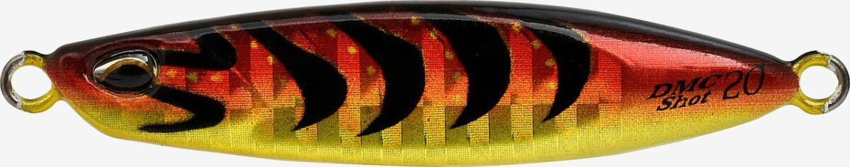 Le Drag Metal Cast Shot est un casting jig qui se distingue par ses flancs plats et son hameçon triple à palette en queue. Cette palette vient compléter des flashs lumineux importants, émis lors de la descente du leurre flanc sur flanc, en apportant une vibration supplémentaire. C’est un leurre polyvalent, qui peut être animé par une succession de coups de scion entrecoupés de pauses, en traction en le laissant redescendre bannière semi tendue pour le faire planer, mais aussi en simple récupération linéaire. Il est très simple à utiliser, depuis le bord comme en bateau, en mer comme en eau douce, et se lance à très grande distance.