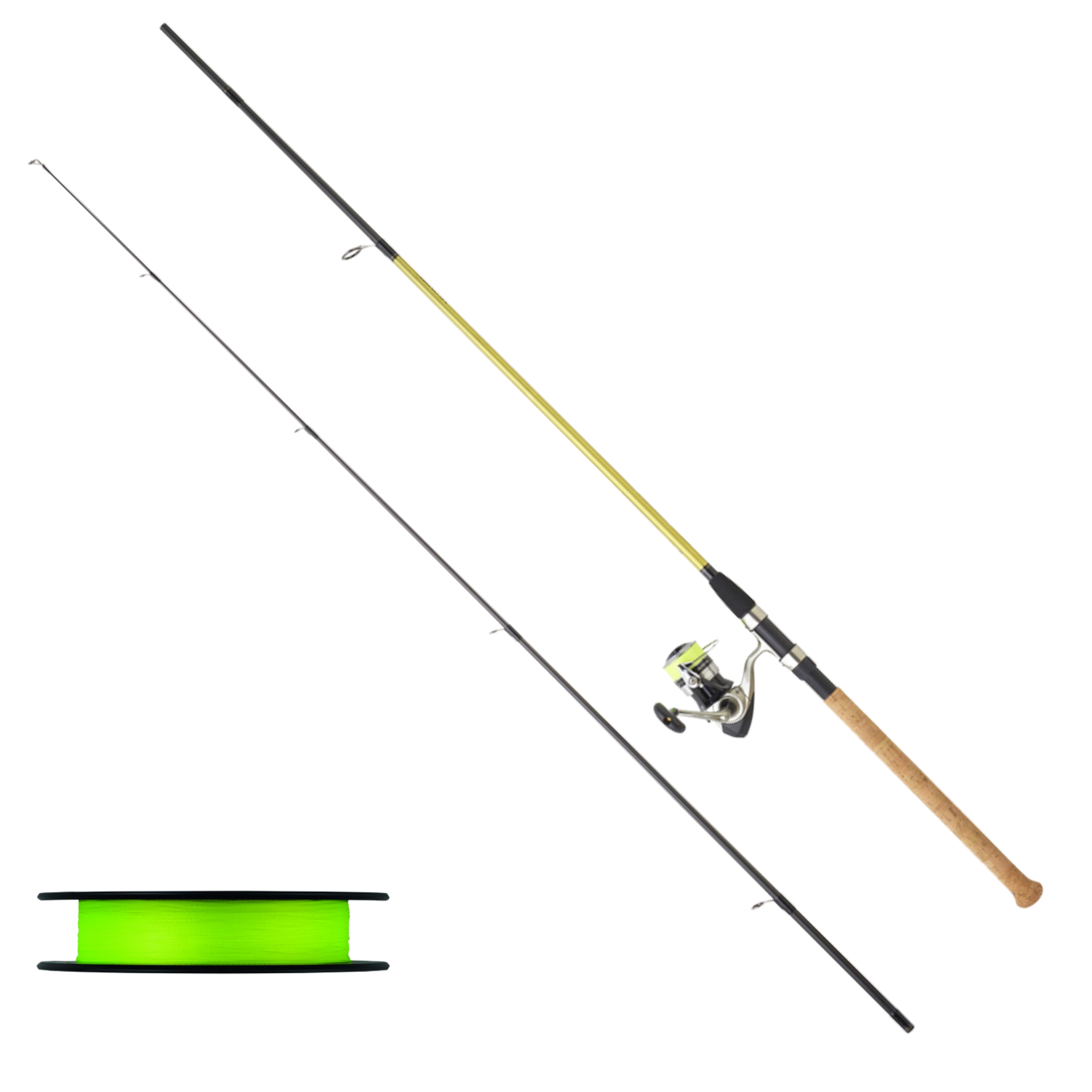 Ensemble poisson mort manié. Canne Sweepfire en carbone, emmanchement inversé et dotée d’anneaux en oxyde d’aluminium.