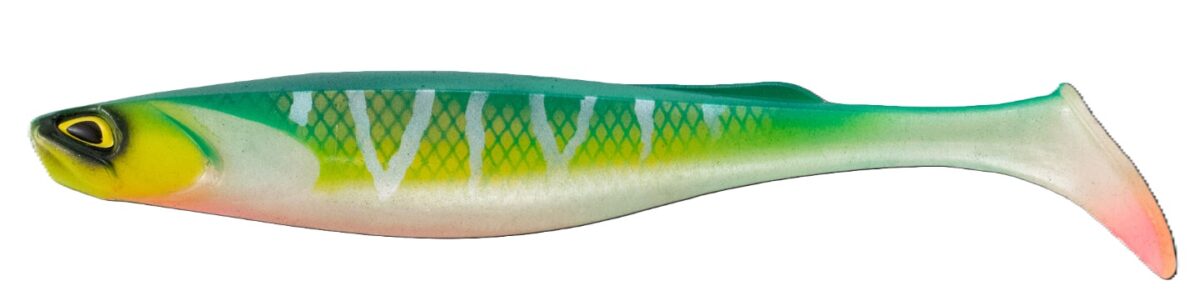 Le Ram Shad est un nouveau leurre développé par Fish Up spécifiquement pour la pêche des gros carnassiers. Il est doté d’une section et d’un dos plus large que le Wizzle Shad, et possède un paddle moins imposant. Ceci lui confère une nage plus subtile, qui, associée à un plastique suffisamment souple, le rend très attractif sur des poissons éduqués. De part sa forme, le Ram Shad nage avec un fort rolling, qu’il conserve même à faible vitesse, permettant ainsi d’insister sur des zones spécifiques.