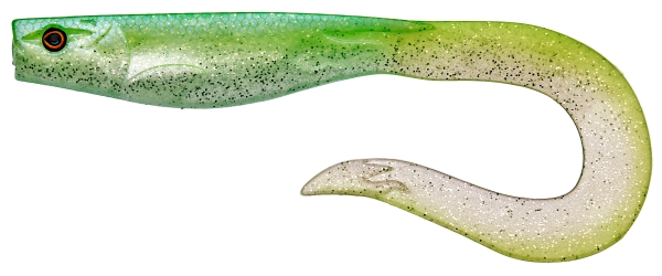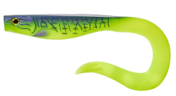 Le DEXTER EEL 150 est un leurre souple anguilliforme qui a été conçu pour la traque des carnassiers. Il reprend certains atouts du DEXTER SHAD notamment sa gomme à la fois souple et résistante, aromatisée à coeur par l’attractant crustacé « NITRO BOOSTER ». Il peut être monté et utilisé de multiples manières (jig heads, hameçons offset wide gape pour montages texas ou weightless, comme trailer de swimming jigs, CRAZY CRUSHER blade jig ou CRUSHER spinnerbait). La nage du DEXTER EEL a été pensée pour amener une alternative aux gros leurres souples de type shad. Les ondes basses fréquences émises par le DEXTER EEL sont ressenties de loin par la ligne latérale des carnassiers, mais n’éveillent pas leur méfiance. Ramené en linéaire, il peut être cranké rapidement sans décrocher pour battre du terrain. A vitesse de récupération très faible, il prend déjà vie ce qui permet de ralentir l’animation au passage d’une zone de tenue marquée. C’est aussi un atout pour déclencher l’attaque des vieux poissons qui voient en lui une proie lente et facile. Initialement conçu pour la traque du brochet specimen, il a aussi démontré lors des tests de grandes performances sur les gros silures mais également en mer sur les lieus et les maigres.