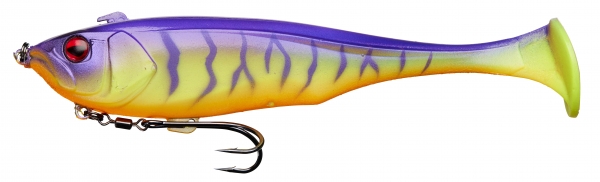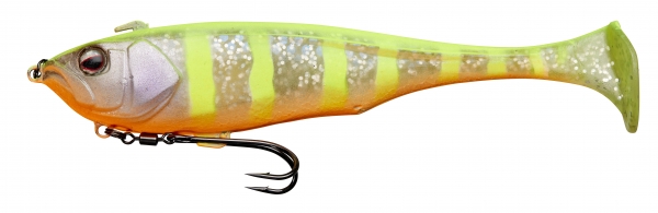 Concentré d’innovations, le DUNKLE est un soft swimbait shad principalement destiné à la traque du bass et du brochet. Très facile à utiliser, sa densité permet des lancers longue distance mais en fait également une arme de premier choix pour skipper sous les frondaisons ou prospecter les zones d’herbiers et autres encombrements. L’armement constitué d’un hameçon double ultra piquant, monté sur un émerillon rolling et un anneau brisé, est maintenu en place par un crochet de fixation et se libère au moment de la touche afin de limiter les décrochés et de préserver l’intégrité du leurre. Un second crochet de fixation situé sur le dos du DUNKLE permet d’y placer l’armement pour passer au plus près des obstacles. La forme du corps, épaisse puis s’affinant très nettement jusqu’à une large caudale, lui confère une nage chaloupée à faible vitesse, il reste ainsi plus longtemps dans la strike zone augmentant fortement les chances de capture.