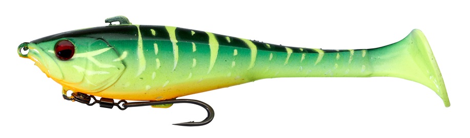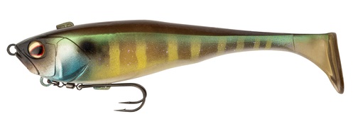 Concentré d’innovations, le DUNKLE est un soft swimbait shad principalement destiné à la traque du bass et du brochet. Très facile à utiliser, sa densité permet des lancers longue distance mais en fait également une arme de premier choix pour skipper sous les frondaisons ou prospecter les zones d’herbiers et autres encombrements. L’armement constitué d’un hameçon double ultra piquant, monté sur un émerillon rolling et un anneau brisé, est maintenu en place par un crochet de fixation et se libère au moment de la touche afin de limiter les décrochés et de préserver l’intégrité du leurre. Un second crochet de fixation situé sur le dos du DUNKLE permet d’y placer l’armement pour passer au plus près des obstacles. La forme du corps, épaisse puis s’affinant très nettement jusqu’à une large caudale, lui confère une nage chaloupée à faible vitesse, il reste ainsi plus longtemps dans la strike zone augmentant fortement les chances de capture.