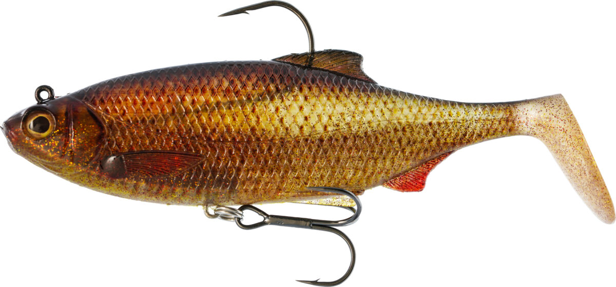Version pré plombée de notre aimant à gros brochets Ricky The Roach 14cm. La queue courte vous permettra de faire évoluer Ricky tout en douceur à travers les différentes couches d’eau, tandis que sa large caudale de type ‘shad’ lui donnera une nage puissante et plus erratique. Quel que soit votre choix, ce leurre entrera en action dès qu’il tombera dans l’eau, observez son rolling serré, une pure merveille ! Il ressemble comme deux gouttes d’eau à un vrai gardon et il fait craquer les carnassiers à coup sûr. Parfaitement adapté au lancer et au jigging pour les plus gros prédateurs !