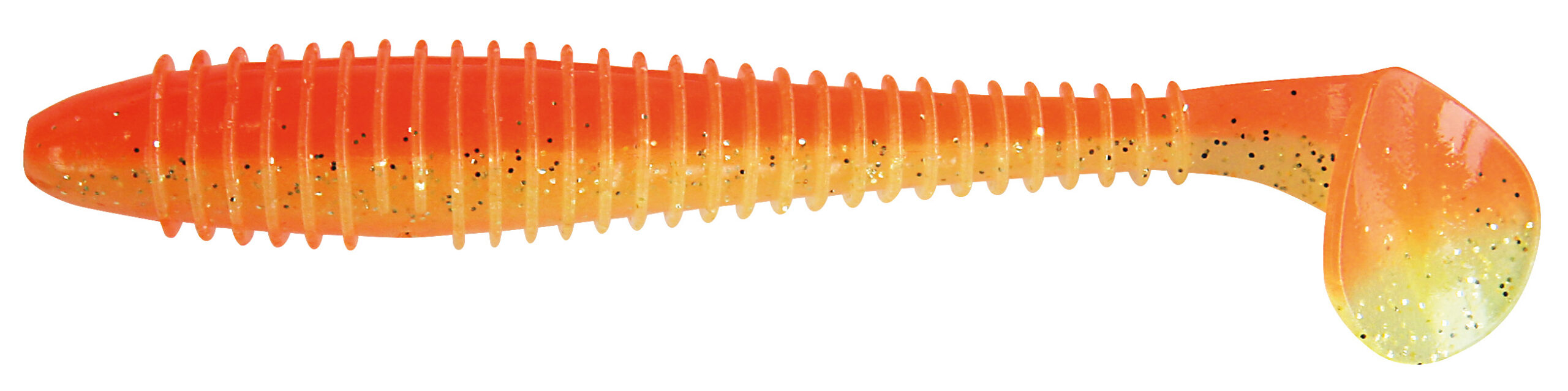 Le Swing Impact a démontré qu’il était une formidable machine à gagner des compétitions. KEITECH relève encore le niveau avec ce leurre souple parfaitement équilibré du fait d’un assemblage de différents plastiques de densité différentes, un plastique léger et flottant sur le dos et un plastique lourd et salé sur le ventre. Le plus impressionnant chez le Swing Impact, c’est sa capacité à nager quelle que soit la vitesse à laquelle il est récupéré. La queue du Swing Impact se met en mouvement au seul contact de l’eau, la queue travaille même en récupération extra lente ou sur des trajets très courts. Le Swing Impact est doté d’un corps annelé qui confère à ce leurre des contours flous dans l’eau car d’après l’expérience de Keitech les prédateurs ont tendance a davantage attaquer une vague silhouette. Le Swing Impact contient des arômes naturels de calamar directement compilés dans la masse. Keitech obtient des coloris extraordinaires grâce à son procédé de double moule.